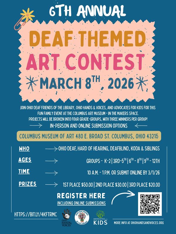 Join Ohio Deaf Friends of the Library, Ohio Hands & Voices, and Advocates for Kids for this fun family event at the Columbus Art Museum on Sunday, March 8, 2026, from 10:00 a.m. to 1 p.m.